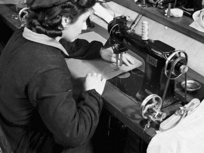 - Photographic Print Title: Female Worker Working on a Sewing Machine in the Factory of the Giordani Company